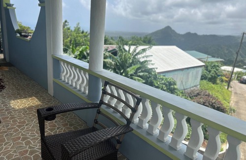 Friendly Friendly mountain side village, with a local Bakery, local restaurants and grocery shops withing a short walk. Waitukubuli national trail, and beautiful rivers near by. What makes a tropicalparadise ideal like alkaline spring water aquifers? Just 30min away from the city Portsmouth with a night life and popular beaches. At the Villa a fully equipped kitchen, outside shower, small grill, upstairs patio with ocean and mountain views, and breezy atmosphere.